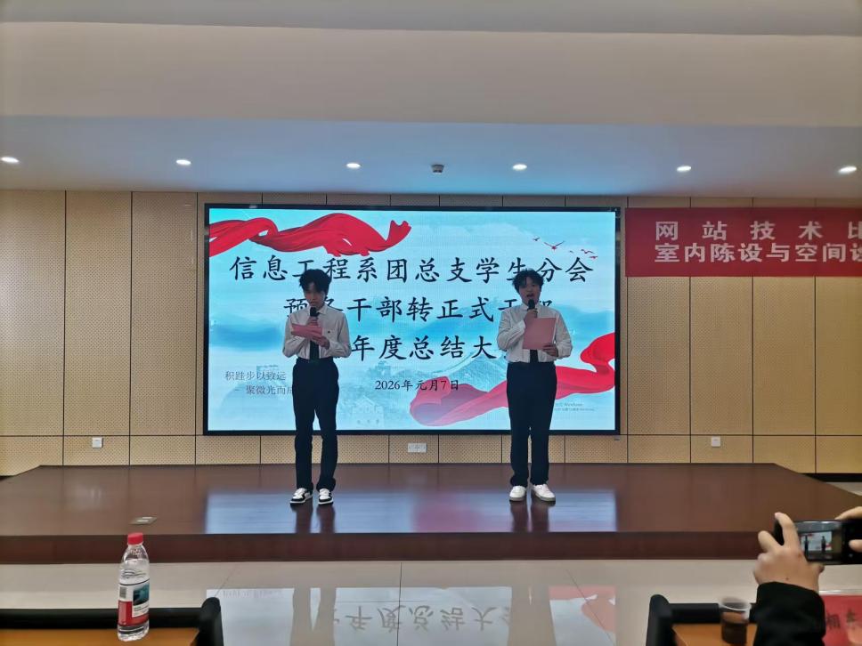 信息工程系讯(通讯员 黄伊瑶)为进一步加强学生会组织建设,锻造一支素质过硬、作风扎实的学生干部队伍,2026年1月7日下午14:30,信息工程系学生分会预备干部转正考核活动在新实训楼211教室顺利举行。系学工办老师、学生会主席团成员及团总支学生分会全体在校成员共同参与。