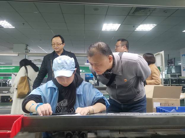 首先,陈军主任一行深入生产一线调研校企合作、工学交替实习工作开展情况。陈军主任、张咏谱书记等对校企合作具体实施、生产车间环境、生产产品种类、生产工作流程和安全文明生产等进行了深入了解,并对学生的主要工作内容、工作适应情况、实习收获和专业技术学以致用等与学生进行了沟通。