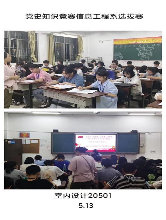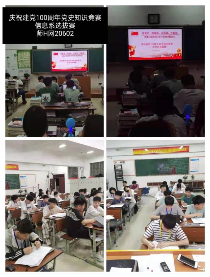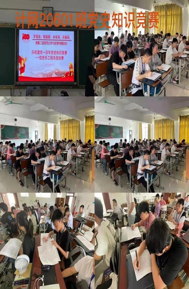 (信息工程系党支部 通讯员何婷)为隆重庆祝建党100周年,深入学习党史知识,了解中国共产党建党100年来的光辉历程和实践创新成果,不断增强全系师生热爱党组织、坚定跟党走的决心,加强社会主义核心价值观体系建设,培养爱国主义精神,增强使命感、责任感和荣誉感。我系开展“学党史 知党情 跟党走”庆祝建党100周年党史知识竞赛活动。
