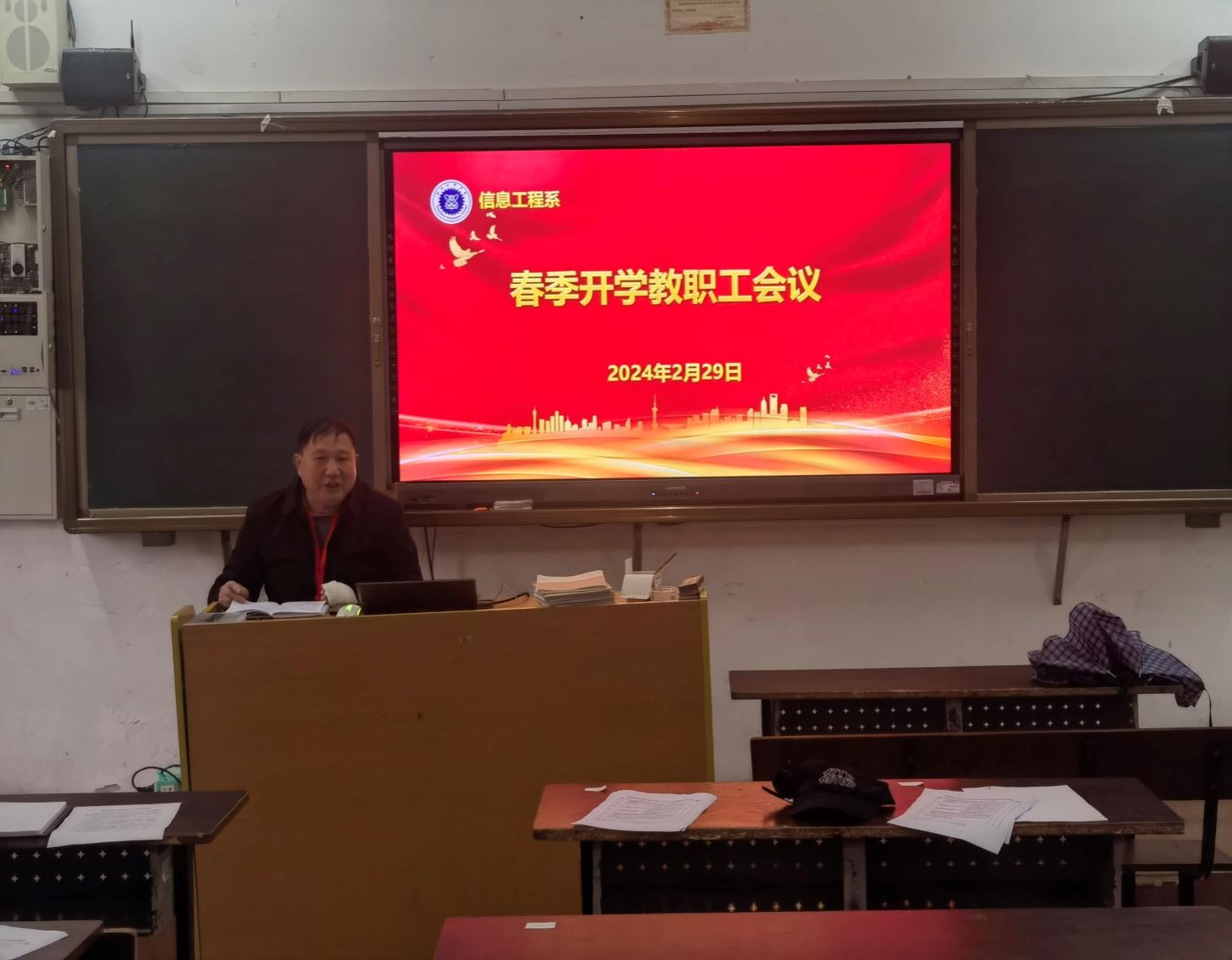 信息工程系讯 (通讯员 李锋)2月29日上午,信息工程系在教学楼508教室召开2024年春季开学教职工会议。系主任唐玉雄讲话,系党支部副书记叶红美主持会议。