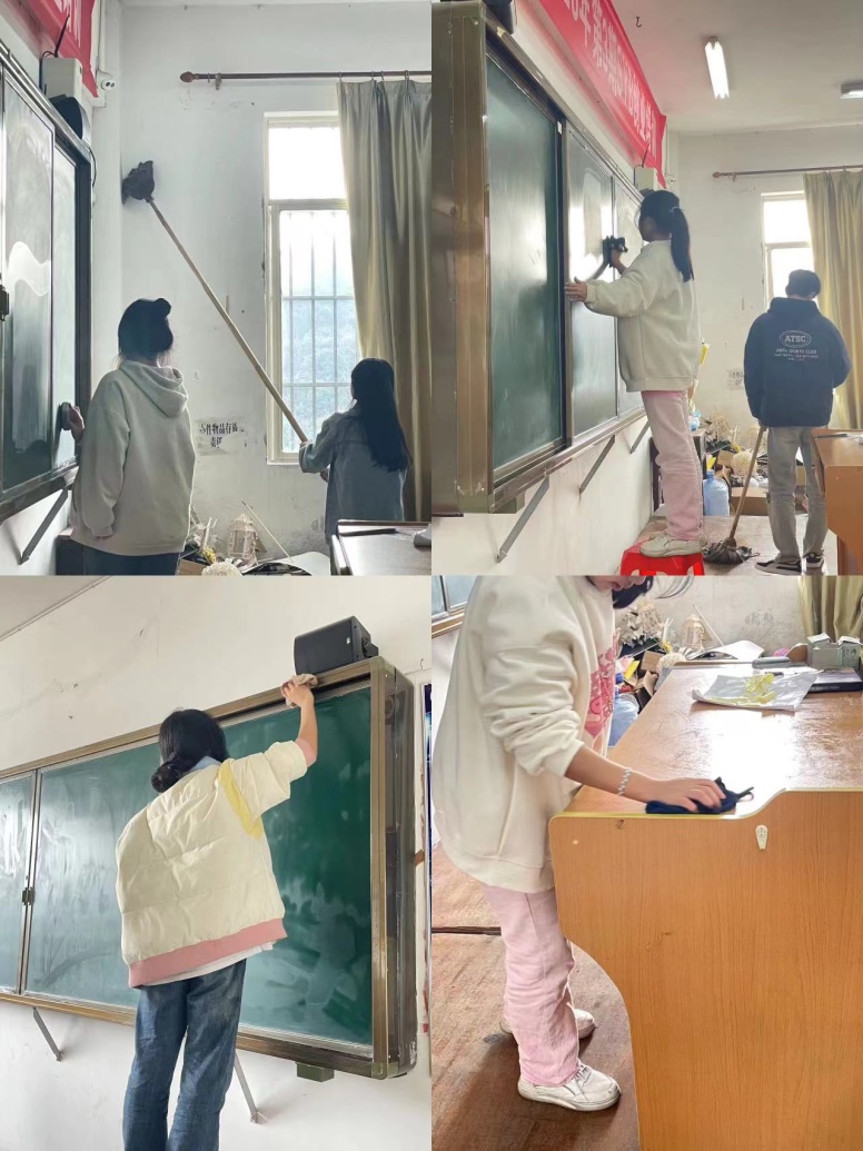 活动现场洋溢着同学们欢快的笑声,大家分工明确,教室的每一个角落都认真清理,看着干净的教室让人心情愉悦。经过同学们一个多小时的努力,教室变得干净、整洁、明亮。
