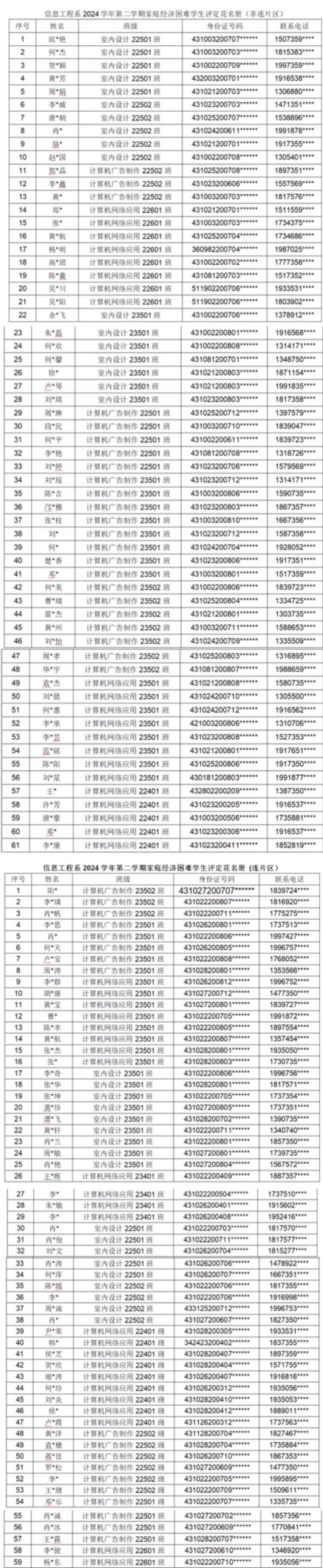 信息工程系2024年上期家庭经济困难学生认定名单公示