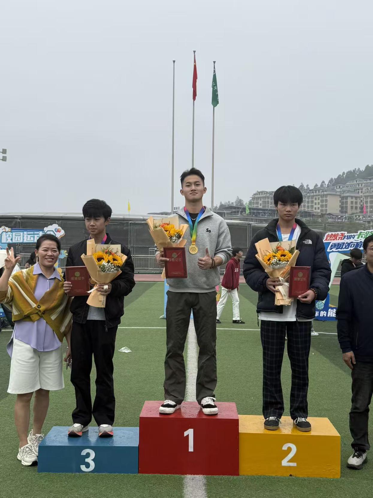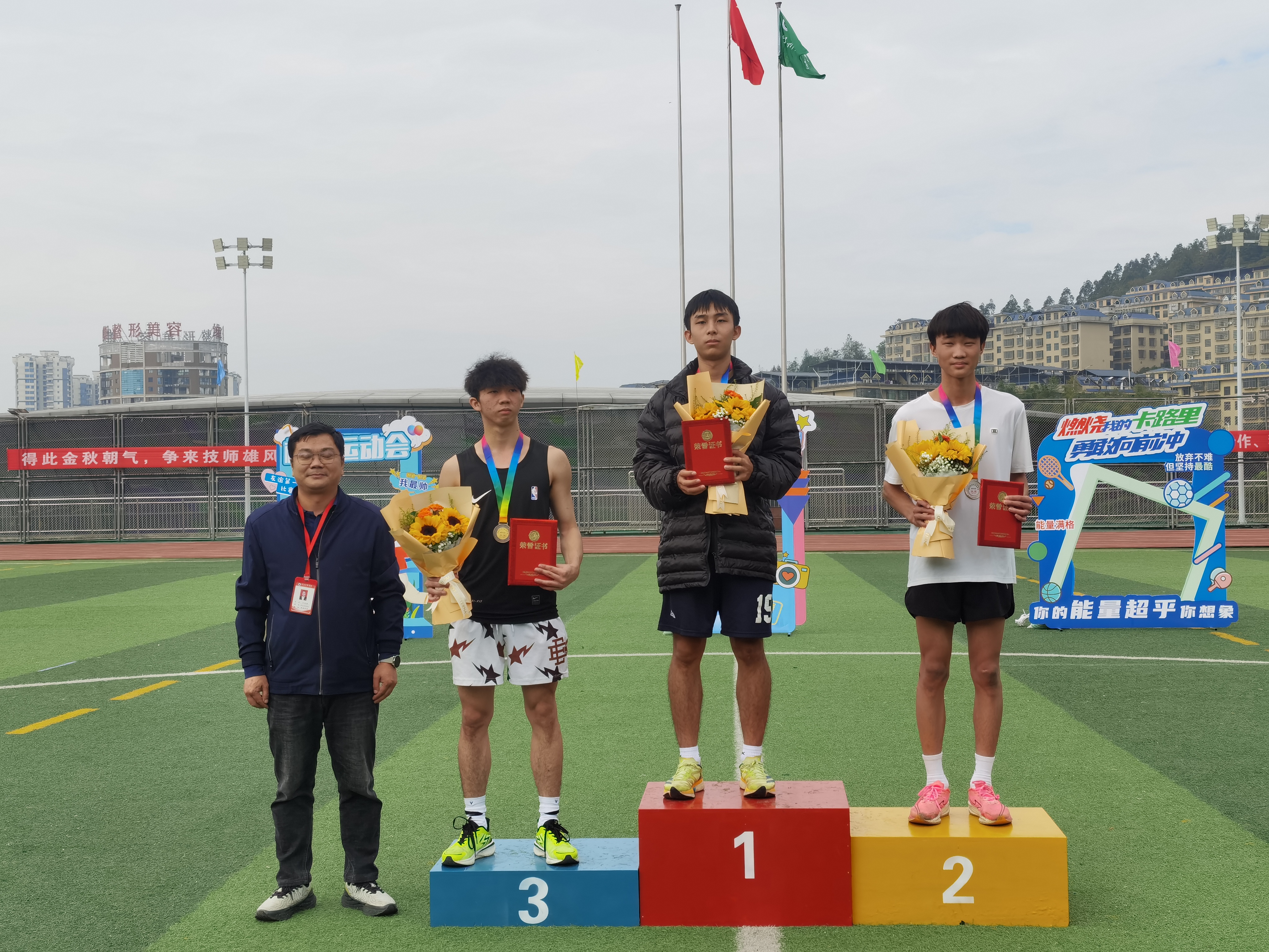 经过两天激烈角逐,运动会在公平、公正的氛围中圆满落幕。我系两名同学在比赛中表现突出,双双打破校记录:来自室内22501班的何俊杰同学荣获400米金牌,来自计算机网络24401班的刘轩同学夺得跳远金牌。此外,何俊杰同学还获得1500米铜牌和4×400米接力赛铜牌,展现出优异的综合实力。