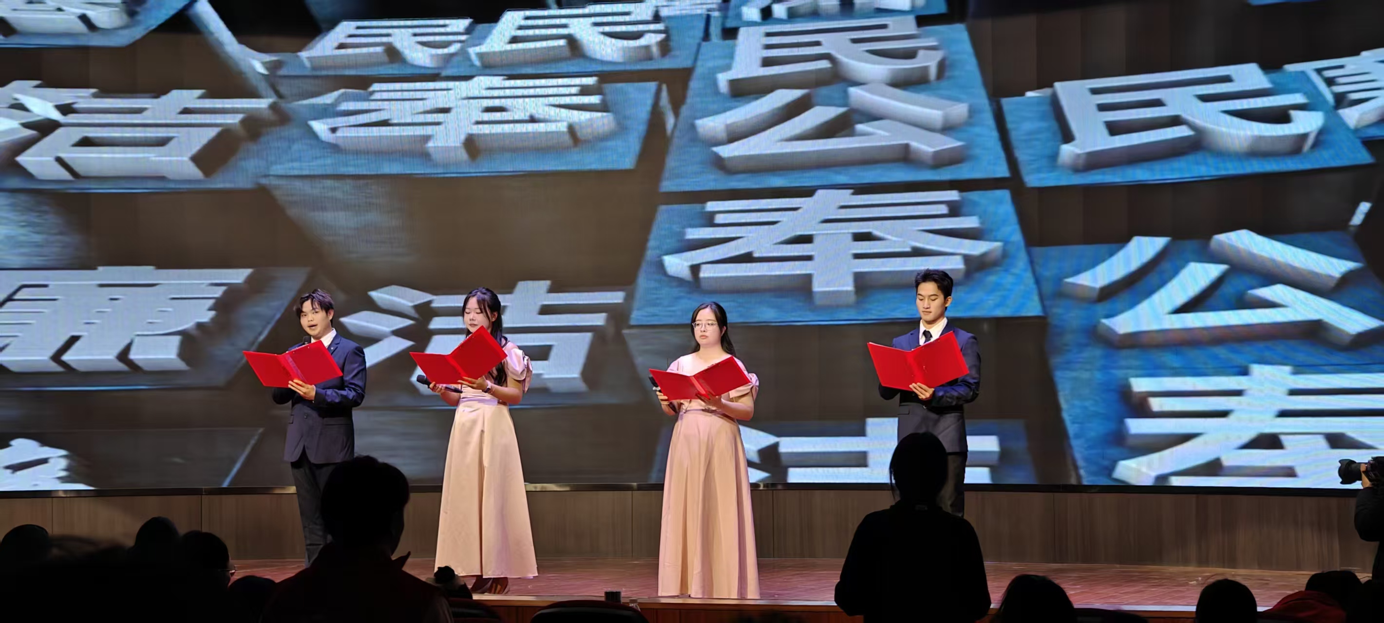 活动现场,郭辉祥、欧阳夏彤、梁悦、刘轩4位同学用铿锵有力的声音朗诵《廉洁颂》,字字句句传递着对廉洁精神的敬仰与追求,抑扬顿挫的语调里,满是新时代青年崇廉尚洁的坚定信念;在合唱《夜空中最亮的星》环节,25位同学们歌声嘹亮、默契十足,清澈的歌声回荡在校园上空,既唱出了青春的蓬勃朝气,更传递出追逐梦想、坚守初心的奋进力量。