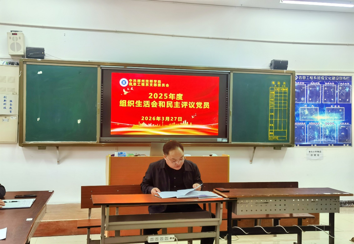(信息工程系通讯员 何婷)为深入学习贯彻党的创新理论,扎实推进基层党建工作,2026年3月27日,信息工程系党支部组织召开专题组织生活会,听取了党支部书记罗雄同志2025年度个人述职报告。支部全体党员参加会议。